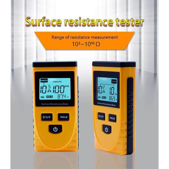 It can measure the resistance value on object surface by putting two parallel electrodes close to object surface to be measured, so as to judge whether the measured object is a conductor, static material or insulator; meanwhile the meter can be used to measure the resistance to ground of object, which is specially applied to different anti-static fields. Features: