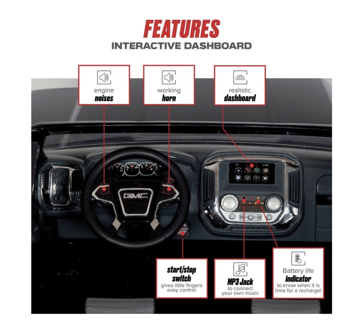 - Includes MP3 connector to add music to your ride
