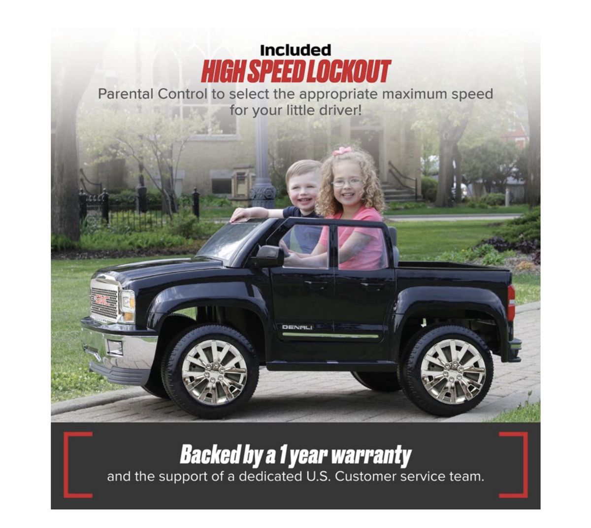 - High-speed lockout so parents can set a safe, maximum speed before letting their little one take the