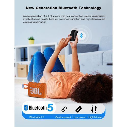 - El diseno ultraportatil de JBL Go 3 combina muy bien con los ultimos estilos, y sus telas coloridas y detalles expresivos hacen que se vea tan bien como suena.