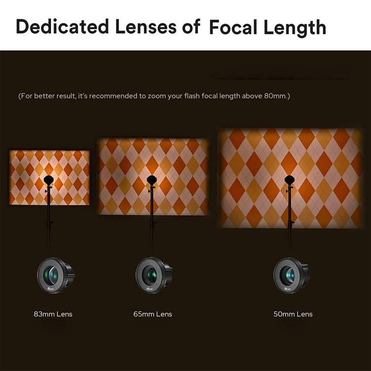 5. The Godox 65mm is designed for the AK-R21 Projection Attachment and alters the beam angle of the light being transmitted through the attachment. Offered in three different configurations, this 65mm provides a medium beam angle when using the attachment.