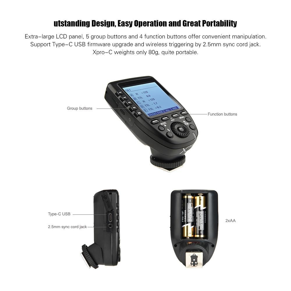 Buy Godox Xpro-C E-TTL II Flash Trigger Transmitter 2.4G Wireless X System 32 Channels 16 Groups Support TTL Autoflash 1/8000s HSS Replacement for Canon EOS Series Cameras for Godox Series Camera Flashes Outdoor Flashes and Studio Flashes in Nigeria