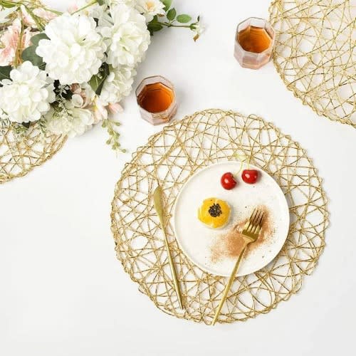 This vinyl placemats are loved by millions of customers since 2017 with the classy elegant design by our professional team. We focus on providing modern stylish table mats that go along with casual dining or special occasions This woven placemats are made of 70% PVC and 30% polyester. The material makes our place mats more durable than the cloth ones. The vinyl placemats are tightly woven and sturdy for daily use plastic placemats are washable and easy to care. The water droplets and sauce would only stay on top, not sink into the fabric. Once you spill foods or sauce on it, put it in the sink right away, wash with a sponge or brush, it & rsquo;ll be clean as new. This table is thick and sturdy. The smoothness keeps any dishes and cups from tilting or spilling. The place mats keep heat from damaging tables with a limited range under 176 & deg;F/80 & deg;C.This table can be used formally or casually for everyday meals and holiday events such as bridal shower with plenty of colors to choose from to suit your tastes. Beautiful addition and nice accent to kitchen decoration and countertops.