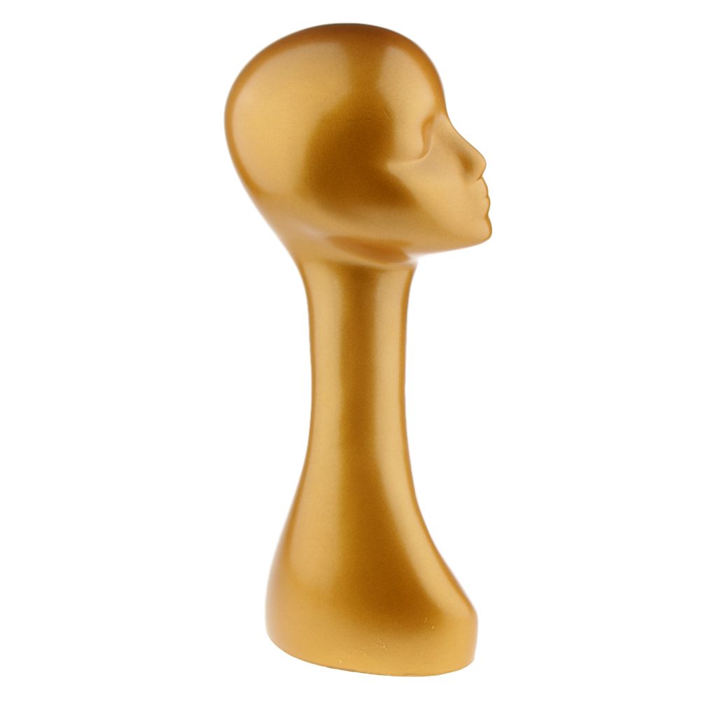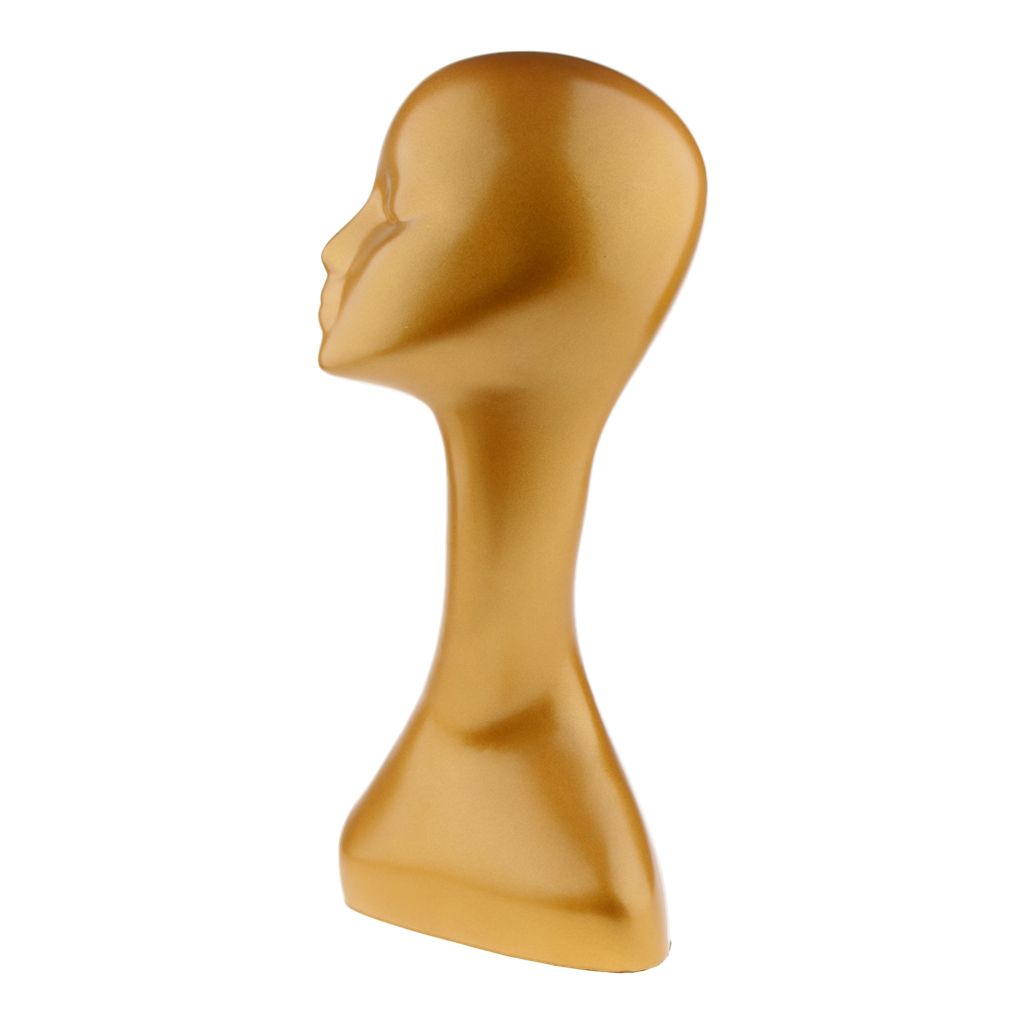 Gold Female Head Wigs Hat Jewelry Display Model Elegant Long Neck