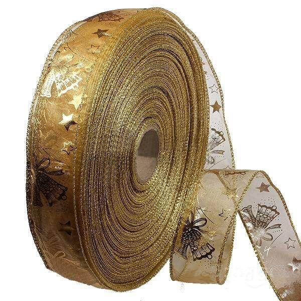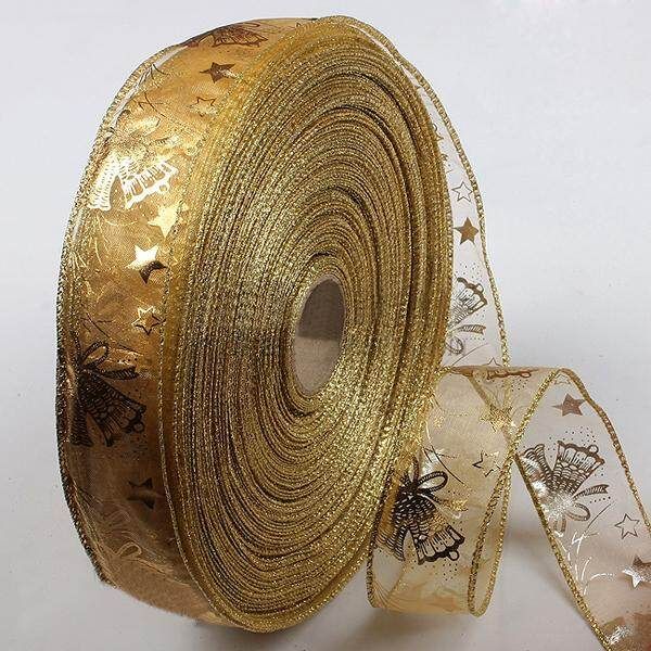 - 1X Gold Hot Stamping Ribbon Christmas Trees Decoration Supplies