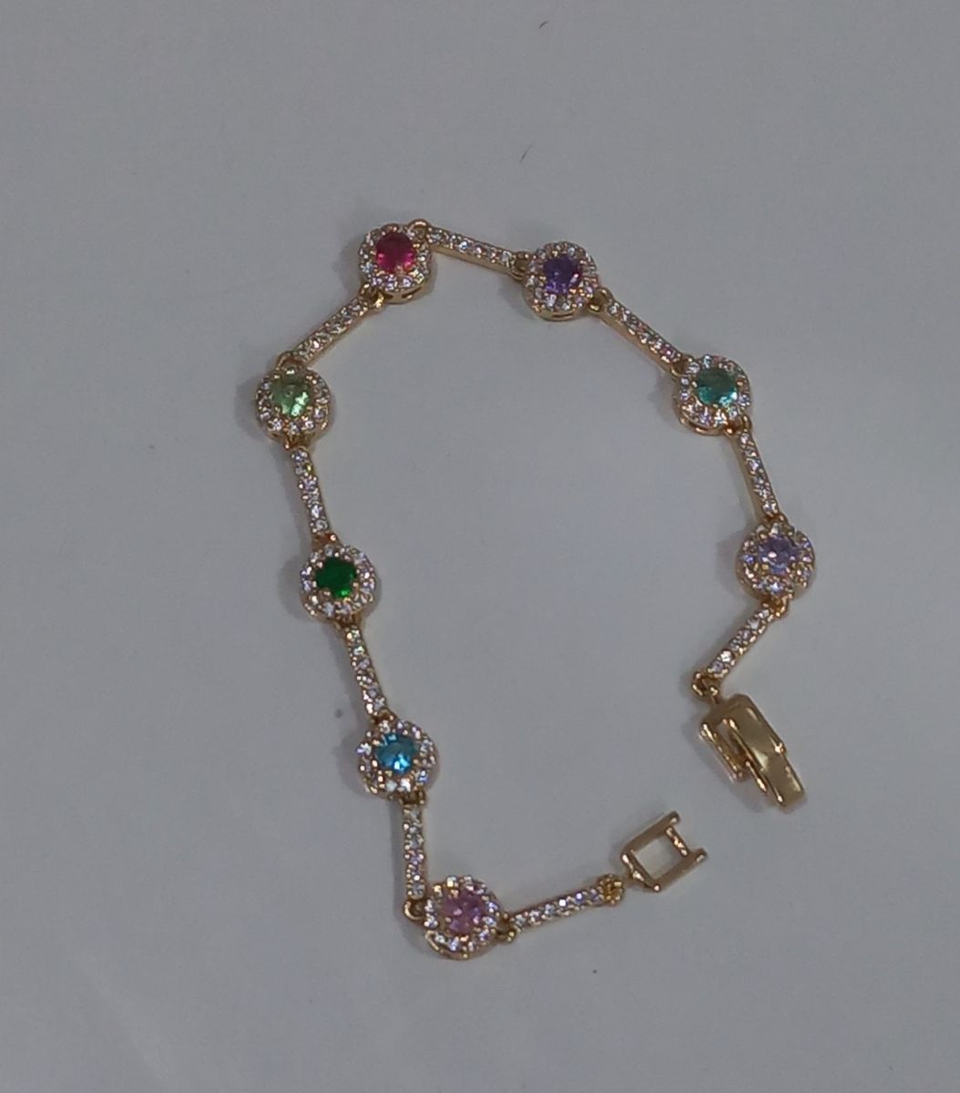 Let your wrist do the talking with this gold stoned tennis bracelet, specially curated for the elegant lady that you are.