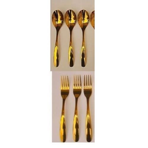 Buy Gold Plated Stainless Steel Spoon & Fork - 3pcs Each in Nigeria