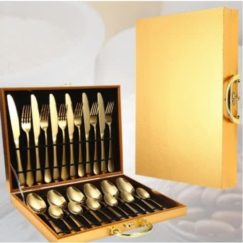 Buy Gold Pleated Cutleries - Set Of 24 in Nigeria