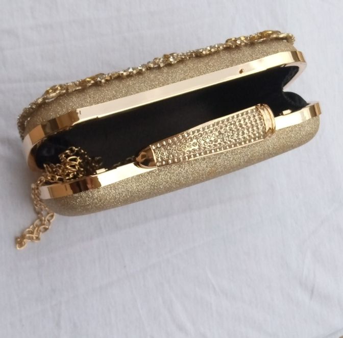 The gold shimmery ladies purse is one of a kind and very new in the market. It is categorized as the the queen of designs and it has a limited edition.It is long lasting and can stand the test of time over many years. It is proudly affordable and it's made for both the young and old generation of ladies.It's classic metal is of high quality and the synthetic leather on it comes with a long lasting shiny shimmers which makes the purse attractive from afar and more attractive when close by.It has a chain handle which makes it easier to carry on the shoulder or cross body section.It's petals as a front design is well attached and properly installed.The studs on the head locks of the purse gives it a classic looks.The inner lining is thick and durable.It is also portable and handy.Light weighted. For more enquiry about other variations you can call on 07036477177.This cute purse with high quality petals is most sorted in the market because if it's latest edition. He size is very portable with an inner space big enough to hold some Valuables like car keys or money.For that event of your that keep you stunning and admired all over the place , go for this cute Crystal clutch purse with high quality petals. It's formulated and designed for females only, please keep in a air spaced environmen , keep away from fire and heat.Also keep away from children. The age grade for this clutch purse is from 18 to 75.It can be used for weddings, red carpet events dinner birthdays, it can be used as gifts to a loved and special one.When you think of a stunning clutch purse that will stand you out in that upcoming event think Gold shimmering ladies purse with petals.