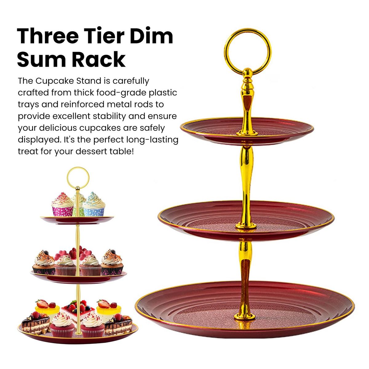Crafted from thicken food-grade plastic serving trays and reinforced metal rods, it offers excellent stability to securely display your scrumptious treats. with its golden edges and circular handle, this cupcake holder adds a touch of sophistication to your event. .