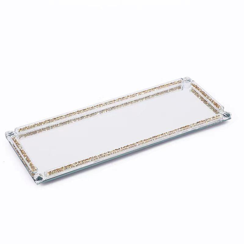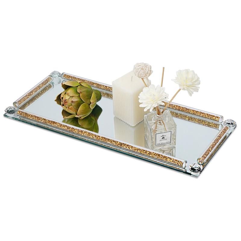 Golden Glass Tray: Mirrored Bottom Vanity Tray Home Decor (1