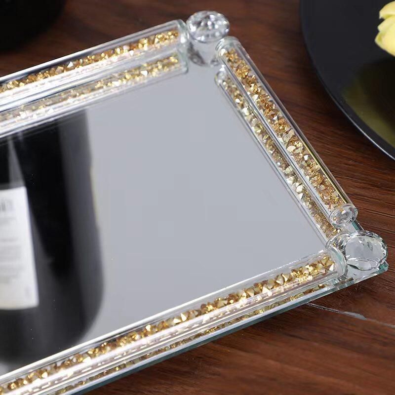 - This glass tray is mirrored and is from durable gold plated material, easy to clean, hand wash.