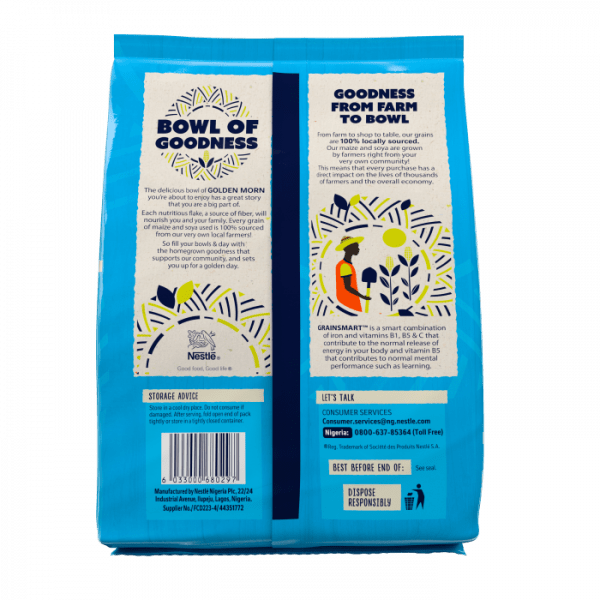 Golden Morn cereal brand (Golden Morn Millet and Golden Morn Maize) is a nutritious, delicious and filling cereal made from locally sourced whole grains. Golden Morn contains over 50% of whole grains in each pack and is fortified with essential nutrients such as vitamin A and B