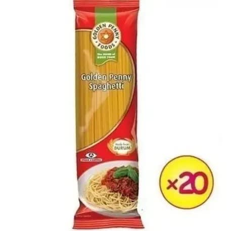 A carton contains 20 pieces of Golden penny spaghetti 500g.