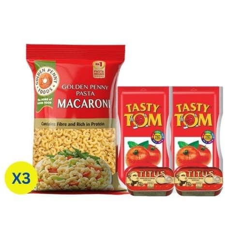 Buy Golden Penny Macaroni 500g X3 - Tastytom Tomato Mix 210g X2 - Titus Sardine X2 in Nigeria