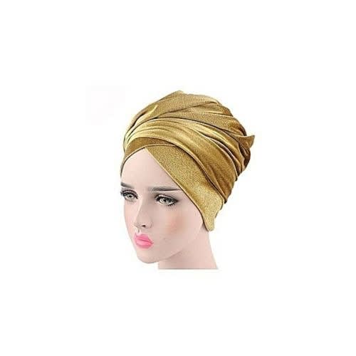 beautiful pleated glitter turban.Ready to wear, style it with any outfit.Stretchy material, lightweight.Size: Teen and Adult (20"-22")Care:Machine washable, dryable