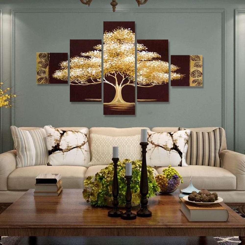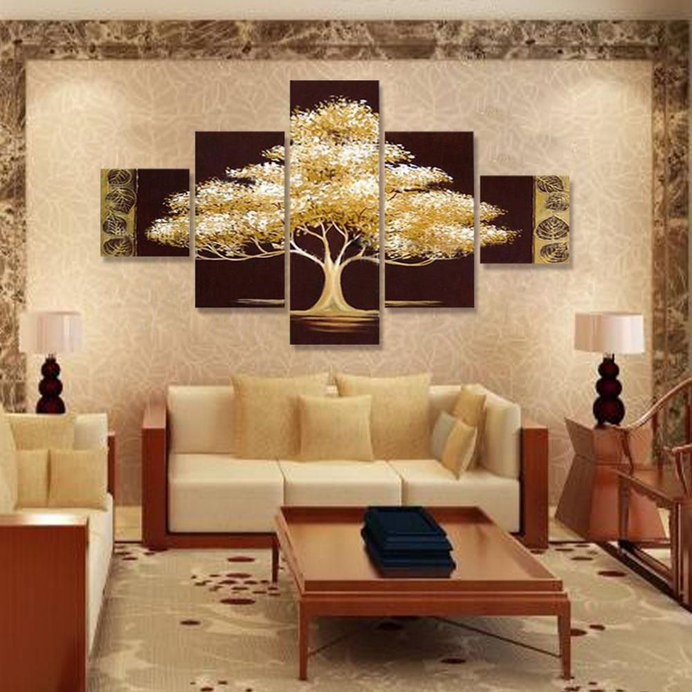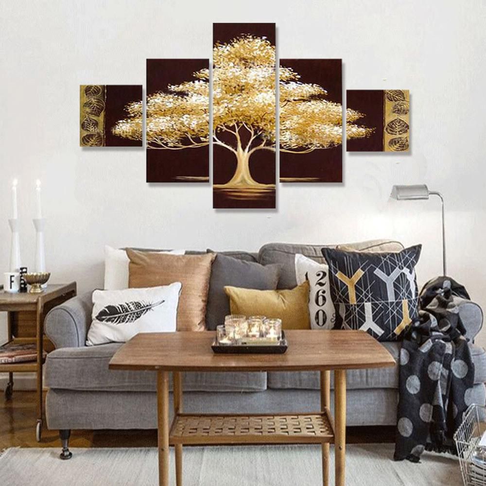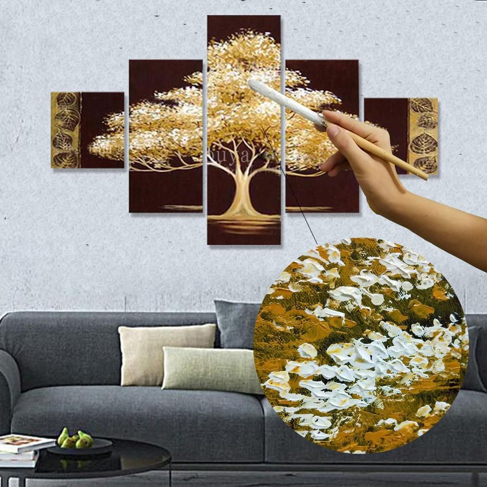 Buy Golden Tree 5 Piece Abstract Floral Hand-Painted Oil Paintings on Canvas Wall Art for Home Living Room Office Decro Without Frame in Nigeria