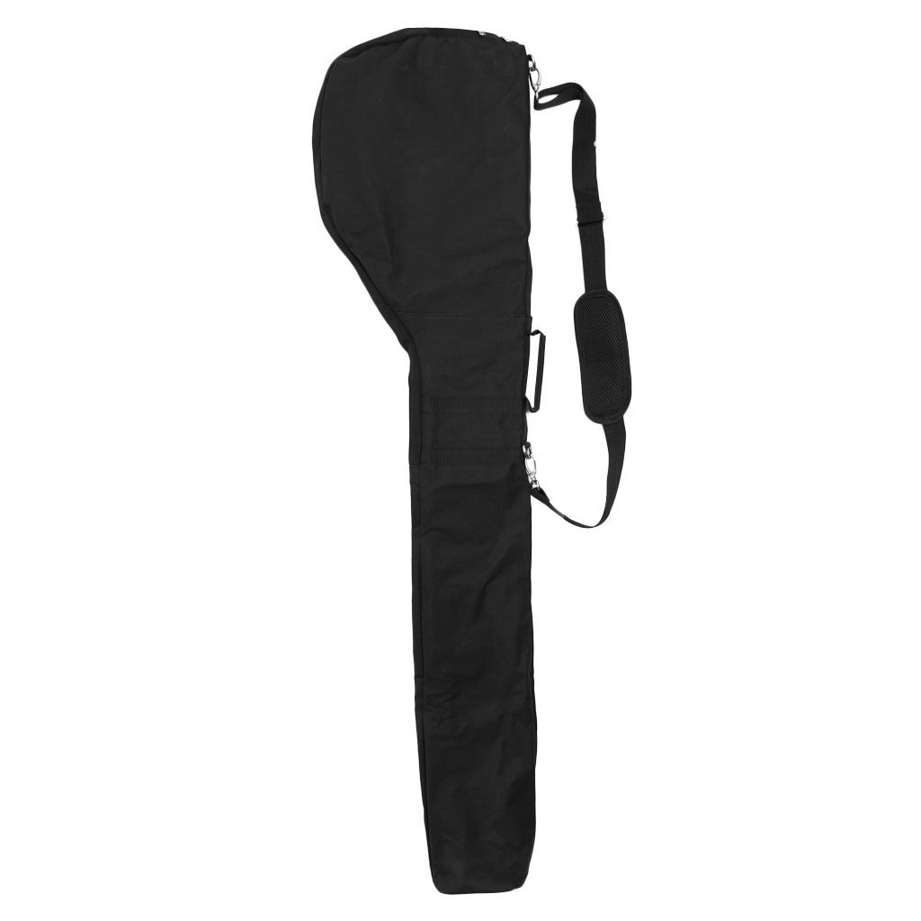 Made of durable nylon material, with the trait of water-resistant and Wear-resistant Two small zipper pockets on the pouch bag for hold your and other stuff A convenient practice golf bag, great for carrying golf clubs and a great case to take on vacationOutfitted with an adjustable shoulder strap and a carry handle, easy and comfortable to carry Lightweight but large capacity, enough space for driver, wood, irons, putter, balls and some golf tees