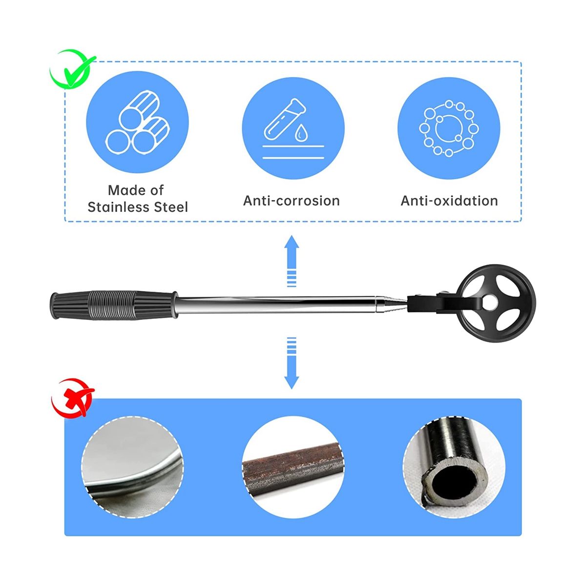 The shaft of our golf ball retriever is made of lightweight stainless steel quality material, lightweight and durable enough, which is not easily broken, and the comfortable rubber grip is more ergonomic, let you use it longer. The golf ball retriever make it easy to fit in your golf bag.