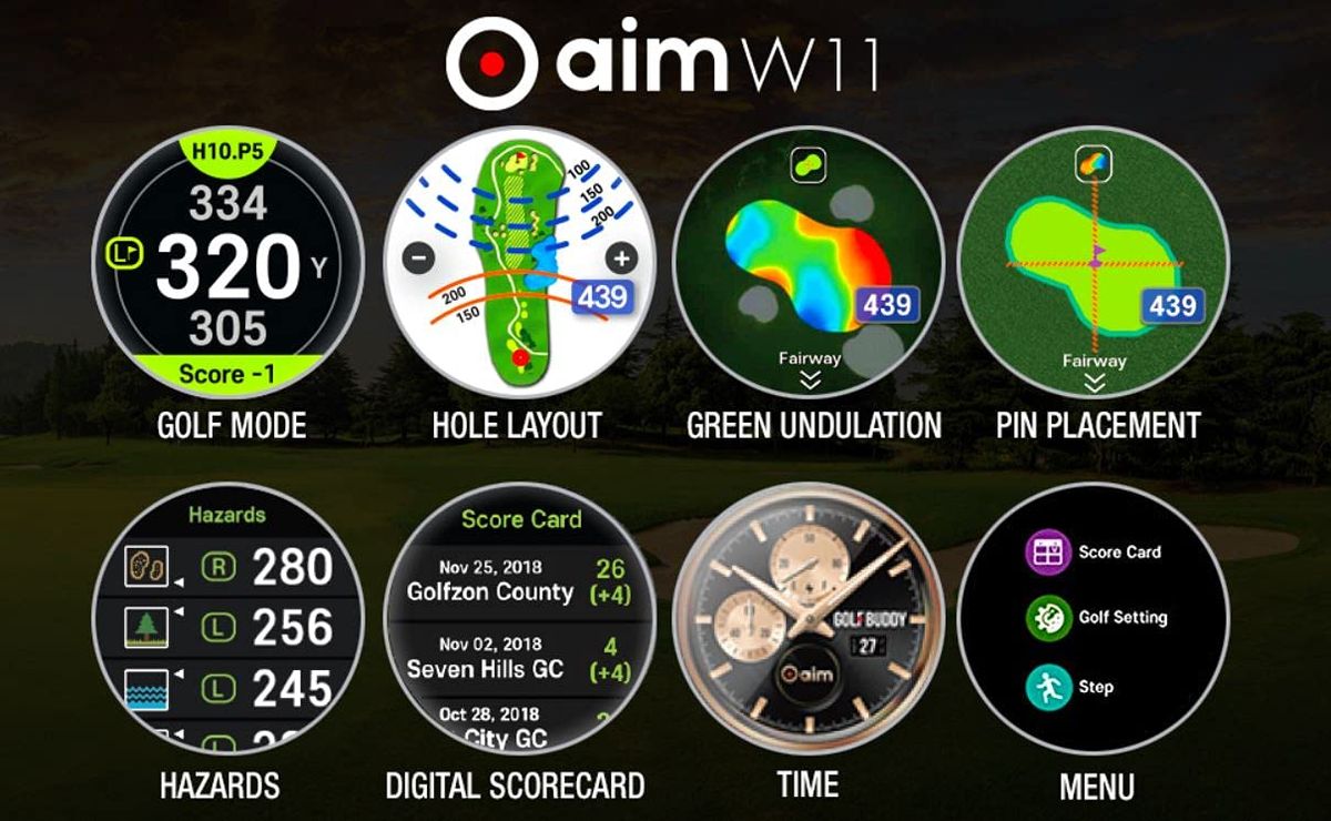 The aim W11 is pre-loaded with 40,000 golf courses across 170 countries. Course updates are freely available wirelessly using the GOLFBUDDY Smart App via Bluetooth.