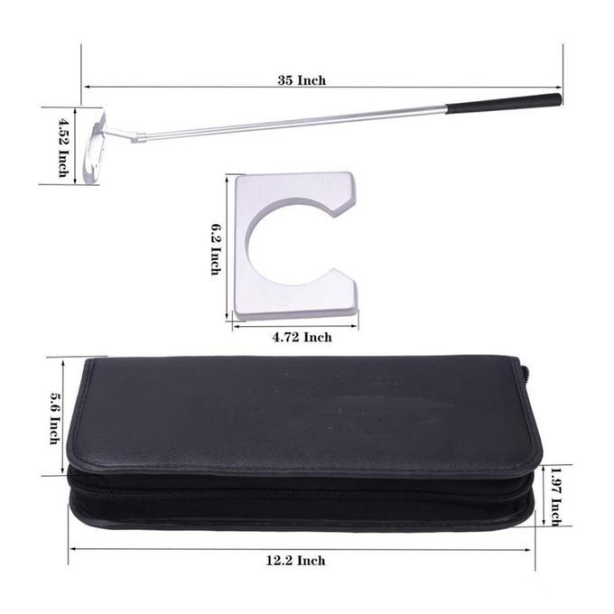 Golf Putter Kit: This Golf Putting Cup includes 1Golf Putter, 1 goal rack, 2 rubber balls and a portable bag.