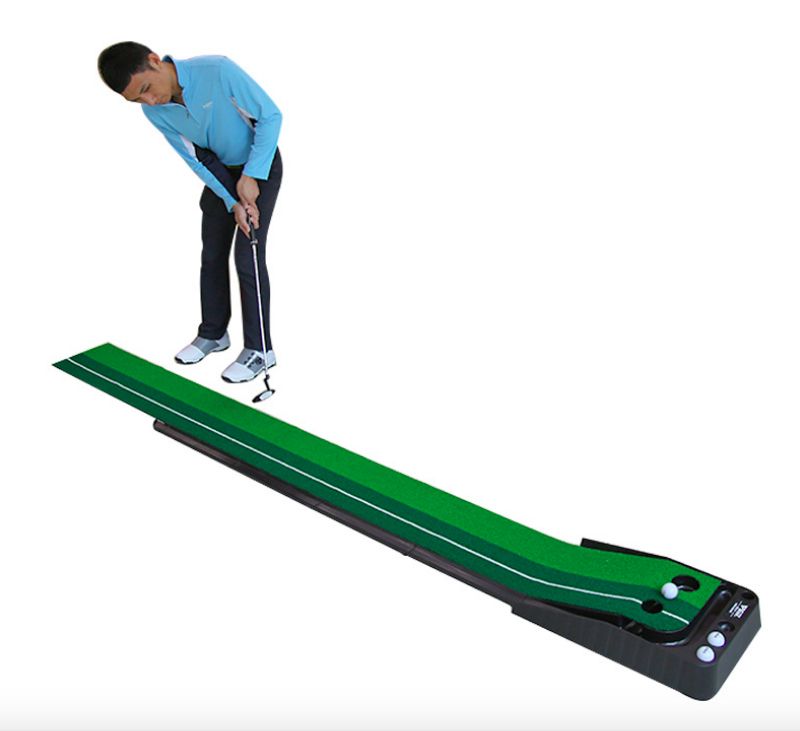 - 2.5m mat with an uphill grade at the end to train the golfer to putt 18 inches past the hole.