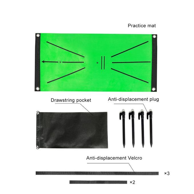 1 Piece Golf Mat 1 Piece Storage Bag 5 Pieces Magic Sticker Strips 4 Pieces Ground Nails