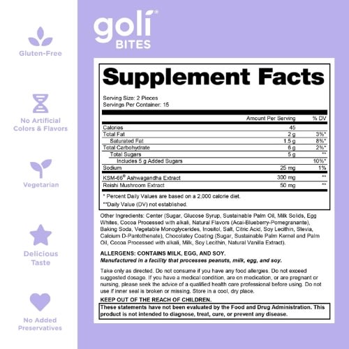 Buy Goli - Nutrition Calm Ashwagandha Bites, Chocolate Acai Berry - 30 Count - 1 Bottle in Nigeria
