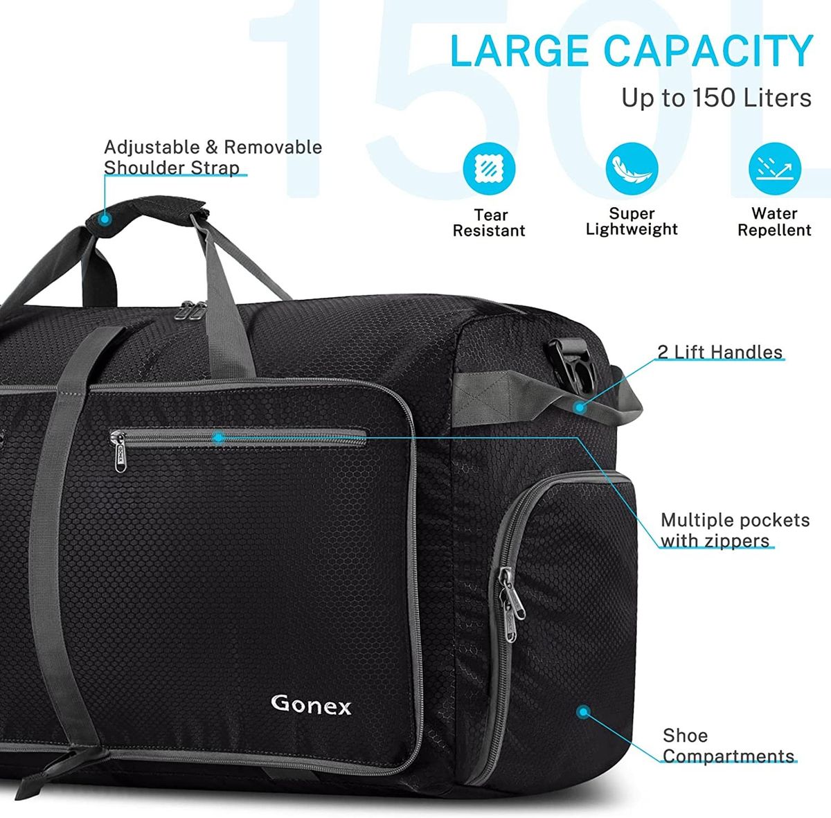 - 【Reasonable Design】This duffle is featured with internal end-pouch& shoe compartment, multiple pockets, 2 handles, adjustable& removable long shoulder strap and sleeve on the back to slip it over luggage handles to offer you better usage experience.