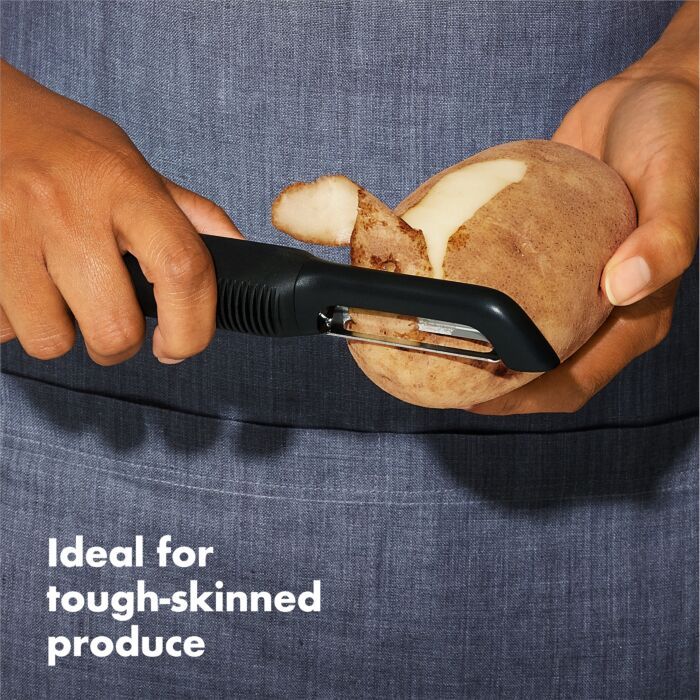 The award-winning OXO Good Grips Swivel Peeler is engineered to stay comfortable through fast, repetitive use. It's perfect for prepping tough-skinned fruits and vegetables like apples and cucumbers.