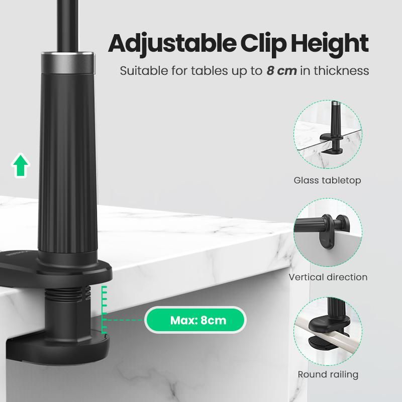 【Versatile Clamp Base】: The adjustable clamp base can be clipped onto your desk, headboard, bed frame for hands-free convenience.