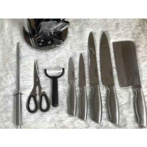 This Sets of Kitchen Knife, consist of different sizes of knives with different function. It consist of kitchen knives, pricing knife, scissors, mini cutlass use for cutting bony fish , chicken, turkey etc . It is made of metal blade and abs plastic head. It does not rust, very strong, easy to wash and store, a must have for every kitchen and a great value for money.This Sets of Kitchen Knife, Sharpener and consist of different sizes of knives with different function. It consist of kitchen knives, pricing knife, scissors, mini cutlass use for cutting bony fish , chicken, turkey etc It is made of metal blade and abs plastic head. It does not rust, very strong, easy to wash and store, a must have for every kitchen and a great value for money.