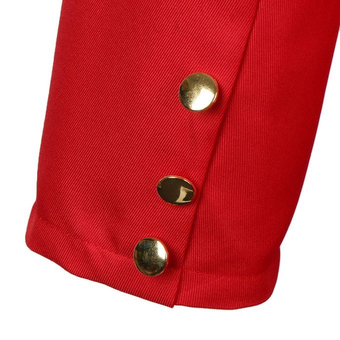 Knee Length Frock Coat, Round Shape Golden Buttons, Side Flap Pockets With Buttons and Braiding