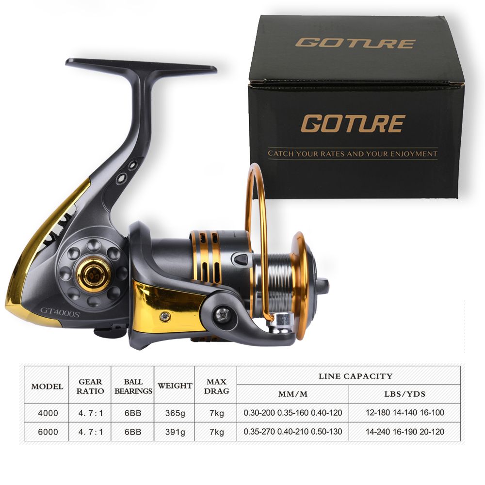 1*Goture Spinning Fishing Reel 6bb Metal Spool 4000