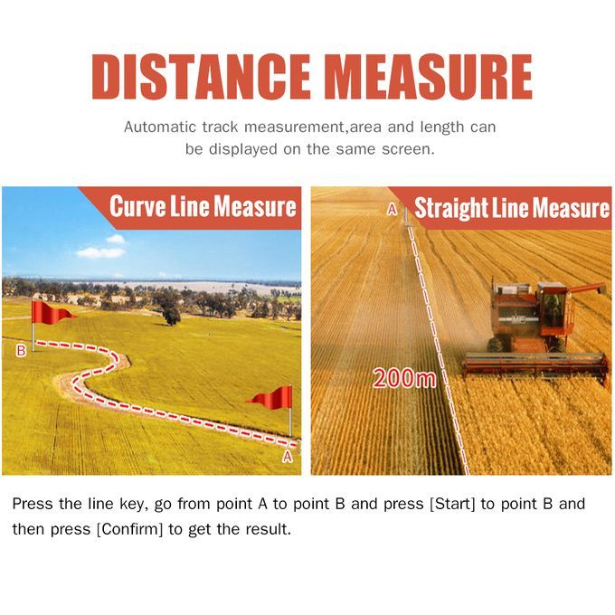 MORE ACCURACY AUTO TRACK --- Automatic track measurement, area and length can be displayed on the same screen. High - sensitivity encapsulated antenna guarantees the measuring accuracy. The area, length and trajectory can be obtained simultaneously by one measurement.