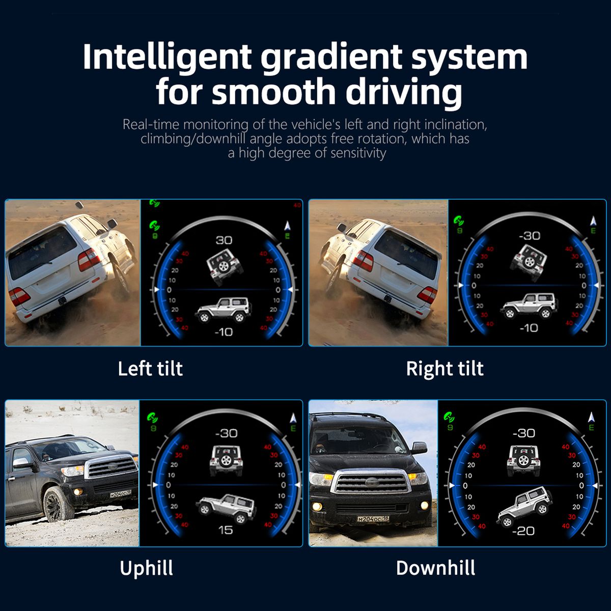 Accurate Inclinometer: It can measure the slope amp; inclination, the degree of downhill amp; uphill of vehicles.