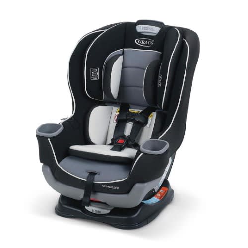 Safely ride rear-facing longer! The Graco Extend2Fit Convertible Car Seat grows with your child from rear-facing harness (4-50 lbs) to forward-facing harness (22-65 lbs). It features a 4-position extension panel that provides up to 5 & rdquo; of extra rear-facing legroom, allowing your child to safely ride rear-facing longer. Children are safer riding rear-facing and should ride rear-facing as long as possible, until they reach the maximum rear-facing height or weight rating for their car seat. With Extend2Fit, the adjustable extension panel and 50 lbs rear-facing weight limit allow the seat to grow with your child in rear-facing mode, providing extended rear-facing use. The seat features the No-Rethread Simply Safe Adjust Harness System, which allows you to adjust the height of the headrest and harness in one motion, and InRight LATCH for a one-second LATCH attachment. Harnessing is made easier with fuss-free harness storage pockets that conveniently hold the harness out of the way while you get baby in and out of the car seat. This car seat is Graco ProtectPlus Engineered to help protect in frontal, side, rear, and rollover crashes.
