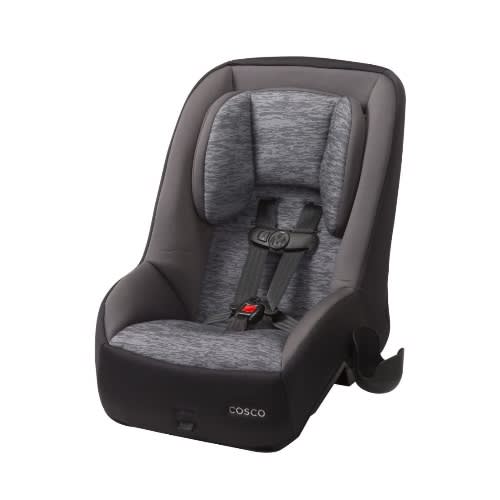 DescriptionThe Cosco Mighty Fit 65 DX Convertible Car Seat keeps your child safe in the car all the way from 5 to 65 pounds. With two modes of use, this extra-comfortable LATCH-equipped car seat accommodates your child up to 40 pounds in rear-facing mode and up to 65 pounds in forward-facing mode. The five-point harness adjusts easily from the front of the car seat and features five heights and three buckle locations. Built-in side-impact protection keeps your little one extra secure. Designed to be just the right size, this convertible car seat takes up less space while rear-facing so parents can have more leg room. Three of these child car seats can fit side-by-side in the back seat of most cars, perfect for growing families. With plush foam padding and premium fabric, this seat gives your child an extra-comfy ride. Easy to clean, the fabric car seat cover is machine-washable and dryer-safe. This car seat meets or exceeds federal, ASTM, and JPMA safety standards and includes a one-year limited warranty. For more than 70 years, Cosco has been a leading children & rsquo;s products brand recognized for its dedication to safety and value. From bouncers to car seats, swings to strollers, and high chairs to play yards, Cosco's essential baby products feature solid value and smart design.