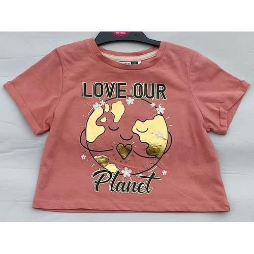 Girl's round neck Tees with 'Love Our planet' inscribed at the front. Your baby girl is comfy and cute any days in our soft light weight Tees paired with a bottom.