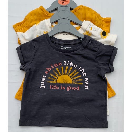 This 3-pack of pretty t-shirts from primark features three different designs 3 pcs t shirt in colorful vibrant prints. Made from soft cotton for all-day long comfort. Perfect for their everyday essentials wardrobe.