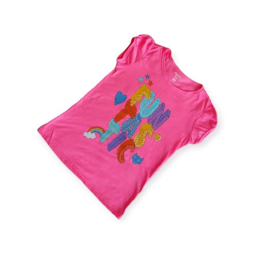 The perfect graphic tee girl she would look so cute. This comfy and trendy shirt is 100% cotton, relaxed, and pairs great with any jeans or shorts. Your girl will look so trendy in this top.