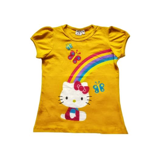 Kids are in love with Hello Kitty tops because of their attractive colors and delicate designs. Also, not forgetting their favourite cat, Hello Kitty on a beautiful colored background. This short sleeve T-shirt is made from a durable blend of cotton mixed with polyester. It provides comfort and a perfect fit when paired with any type of bottoms.