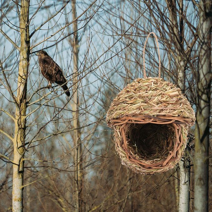 The hanging bird nest is hand-woven with natural straw materials, with a natural appearance, tightly woven, and not easy to fall off.