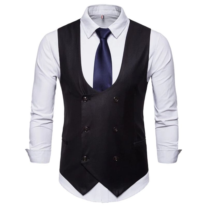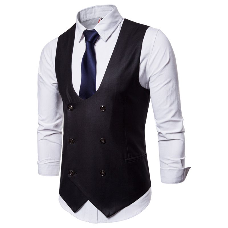1X 6 Buttons Men's Suit Vest Blue Solid Color Business Casual Vest Double-Breasted For Wedding Groomsmen Waistcoat Classic Fit