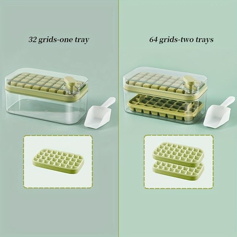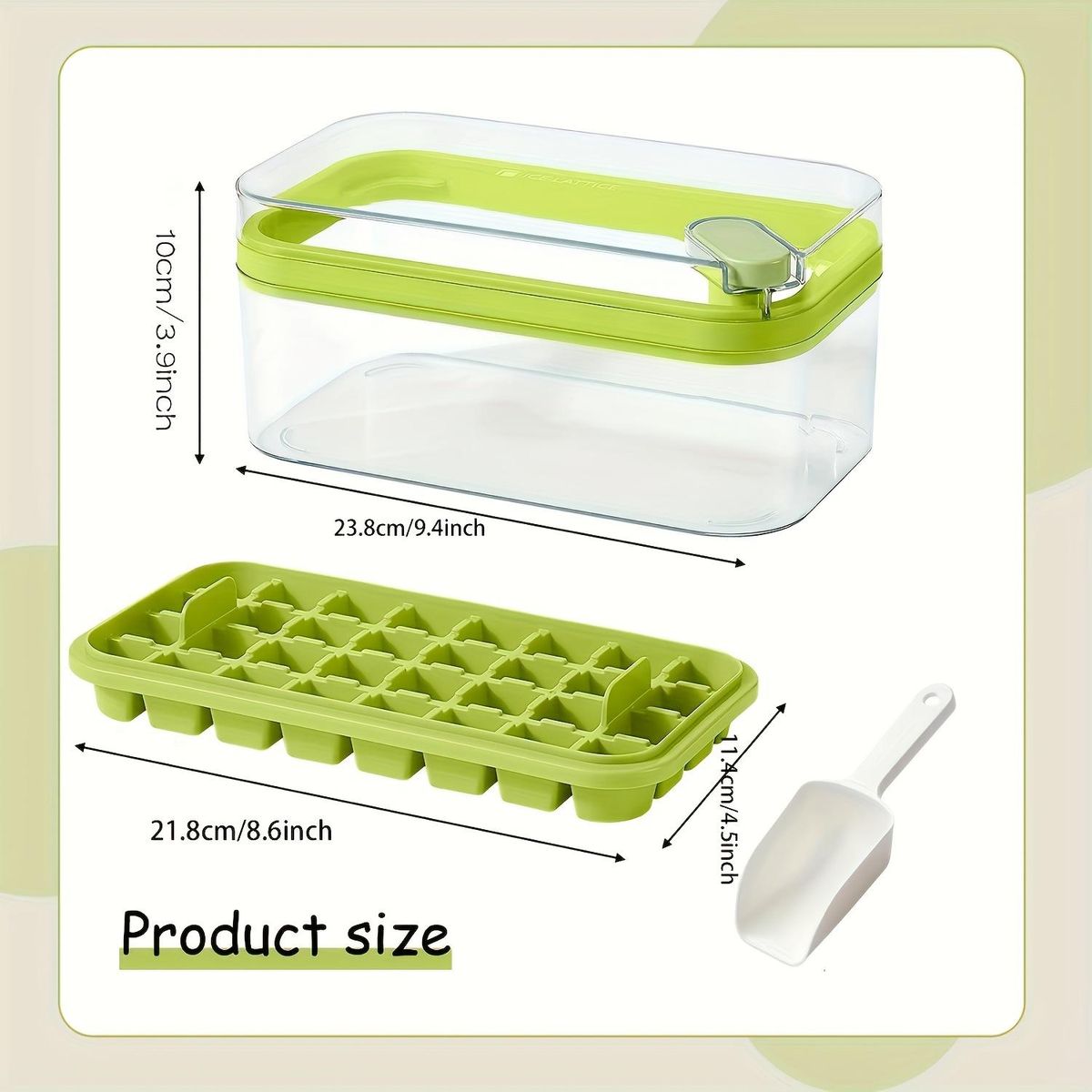 Ice Cube Maker Kit with Scoop: This kit comes with two ice trays and a large 9.37L*4.29W*5.3H inch container that holds up to 200 ice cube. The covered lid prevents your ice cubes from absorbing any odors from the refrigerator. Plus, it includes a super convenient scoop to make serving a breeze.