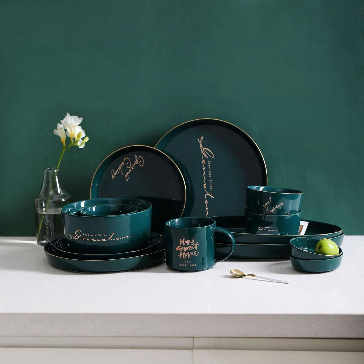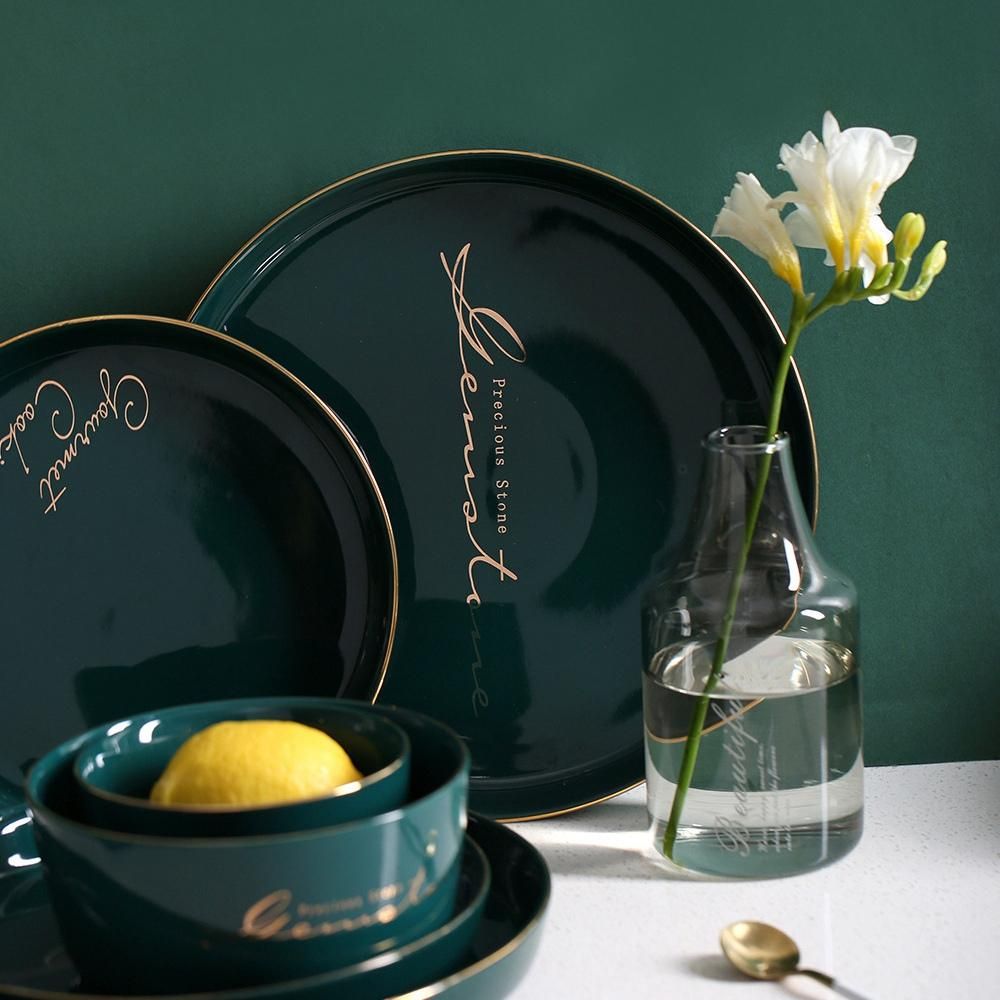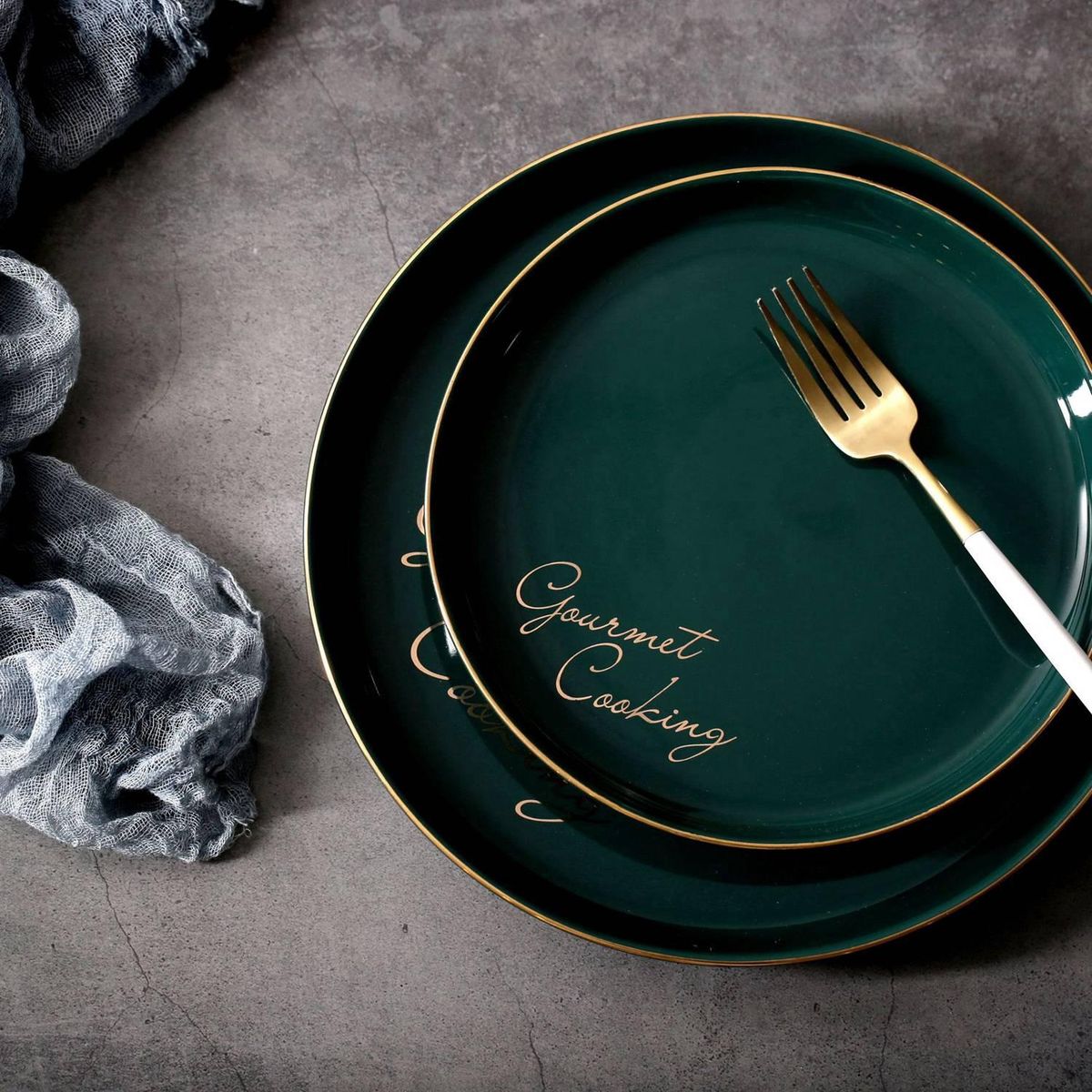 Green Ceramic Dinnerware Set Large Round Plate"Gourmetlightweight yet durable.Item is lead free.