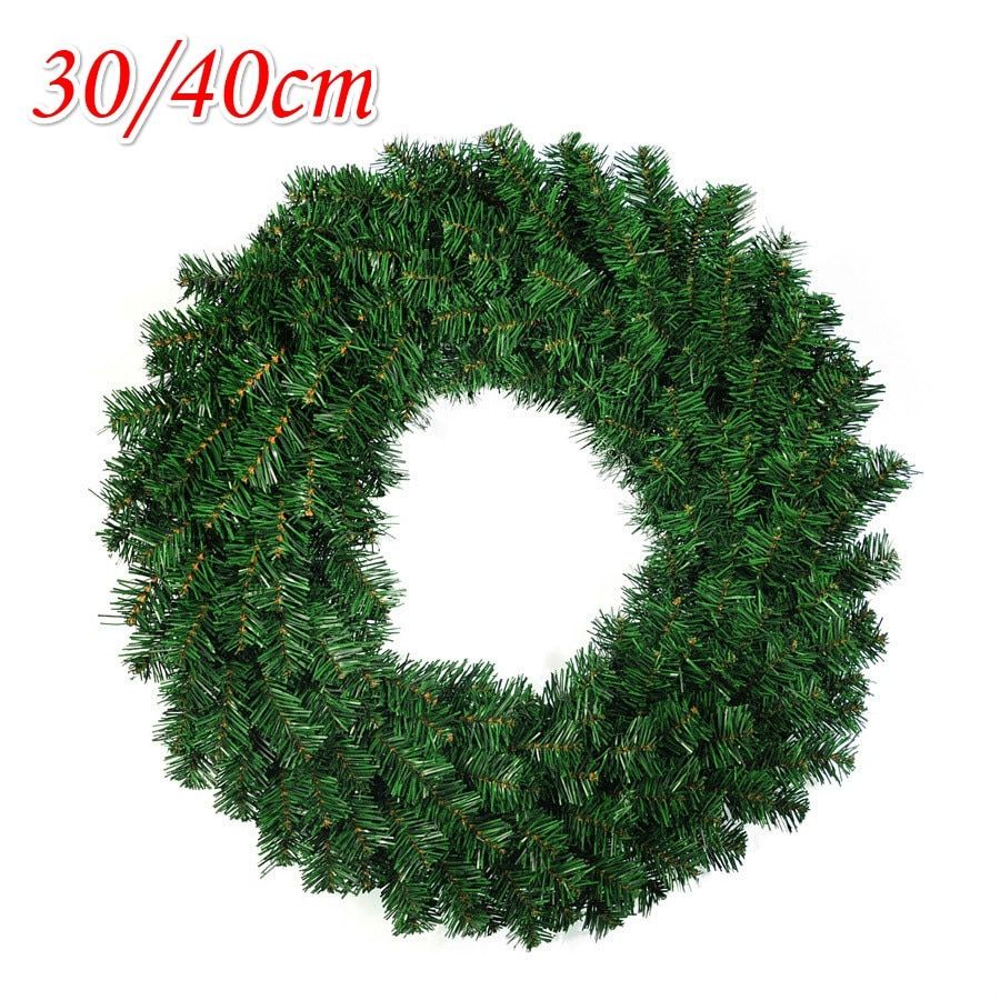 1X Green Christmas Decoration Wreath 30cm 40cm Encrypted PVC Ordinary Leaf Simulation Wreath Door Hanging Christmas Wreath