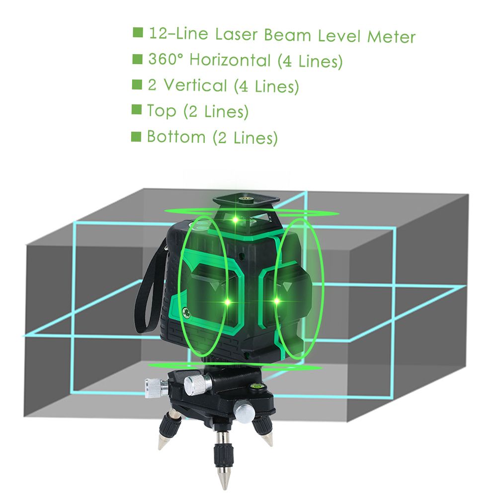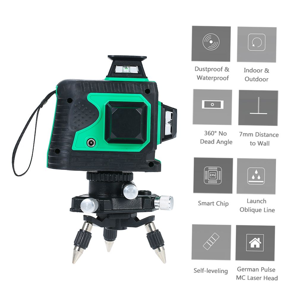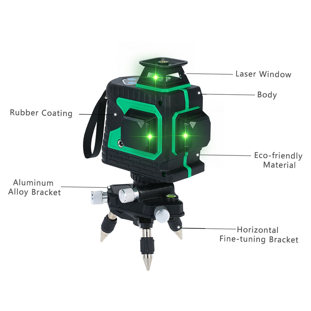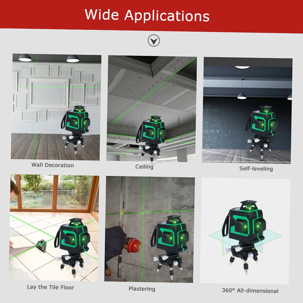 3D 12 lines laser level with high brightness laser and long projection distance, can emit 360 degree visible laser beams both horizontally and vertically.