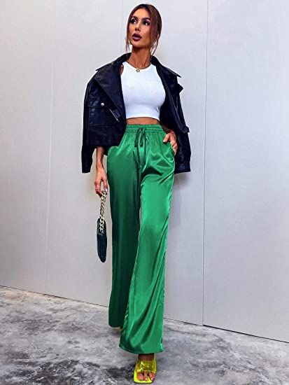 WIDE LEG PANTHIGH QUALITY FABRIC: Women wide leg lounge pants are made of satin and cotton. The fabrics are durable, shinny , breathable, comfortable, not stuffy suitable for sport. it does not stick to the body comfy to wear