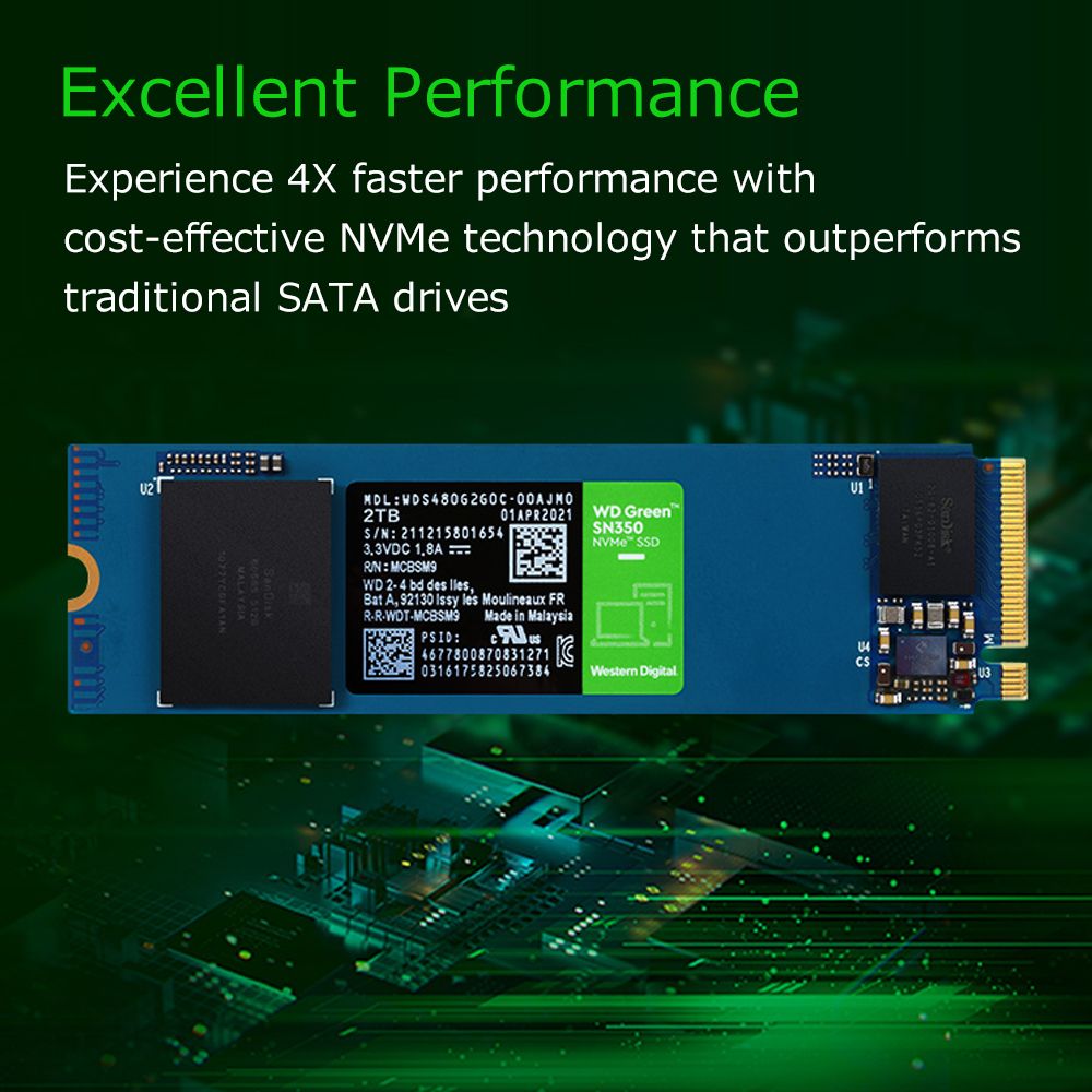 The WD Green SN350 NVMe SSD offers several choices of 240GB-1TB.